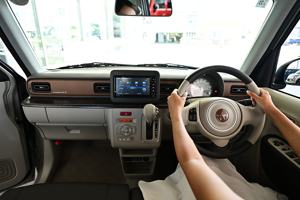 「かわいい」だけじゃないのが、アルトラパンのすごいところ。スズキの先進安全技術「スズキ セーフティ サポート」が搭載されており、衝突被害軽減ブレーキや誤発進抑制機能など、安心の装備が充実しています。