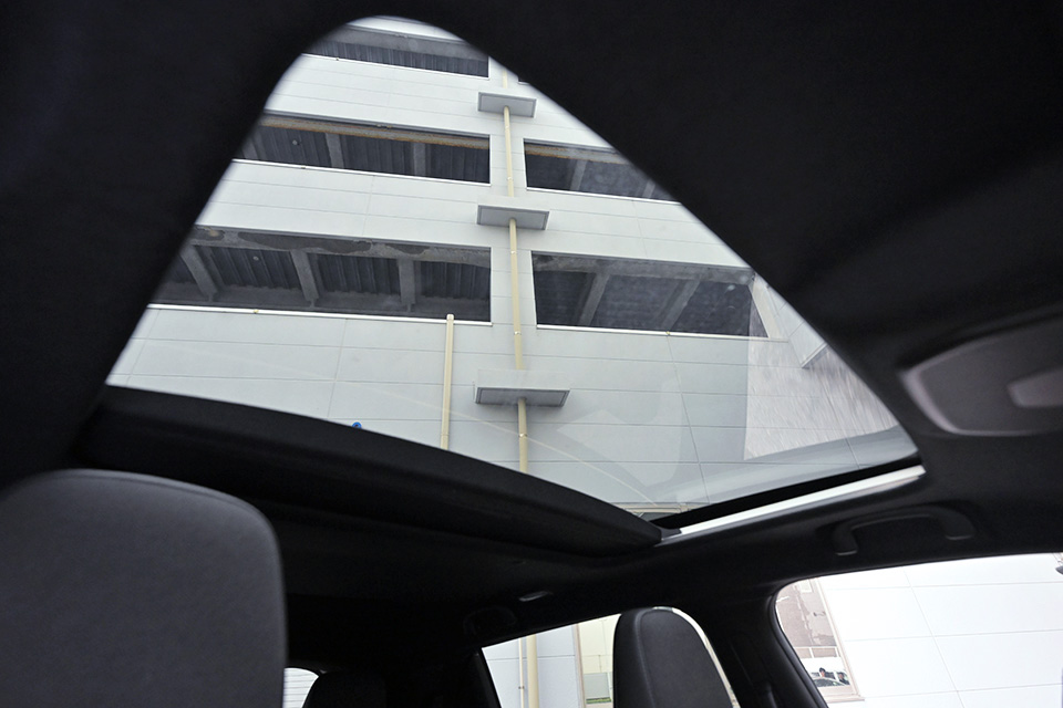 ガラスルーフはサンシェードとIRカットガラスを採用し、明るさと快適性を両立。