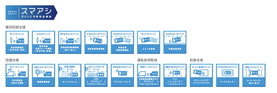 またダイハツの先進安全技術「スマートアシスト」は、カメラやセンサーが周囲を検知し、衝突回避や踏み間違いの防止をサポートします。「もしも」のときにしっかり支えてくれる安心の味方として、日常のドライブを安全で快適な時間へと変えてくれます。